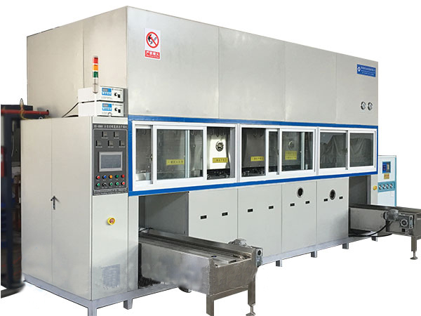 真空清洗工作原理:清洗劑中殘存的氣體較多,含氣量是水的 8~10 倍,超聲波振動子發出的高周波遇到氣體(殘存氧氣)就會衰減,影響了超聲波的精密清洗效果。超聲波空化效應也難以展開,因此需要真空脫氣。首先清洗籃進入清洗槽,這時氣缸驅動槽蓋自動關閉清洗槽,真空脫氣系統啟動,將槽內空氣抽盡,在真空狀態下可以將需要清洗的產品的狹小縫隙內氣體及含在清洗劑中的氣體抽出,超聲波啟動,拋動裝置啟動,帶動洗籃上下搖動,使清洗劑可以充分進行清洗;到設定的時間后,真空釋放,缸蓋打開,清洗籃進入下一工位。